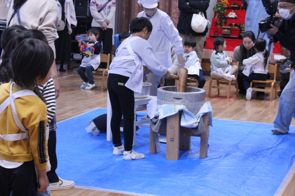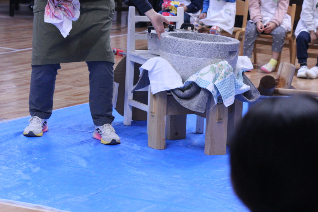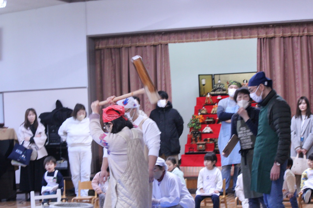 親子で楽しいひと時を過ごした後、お餅つきをしました!