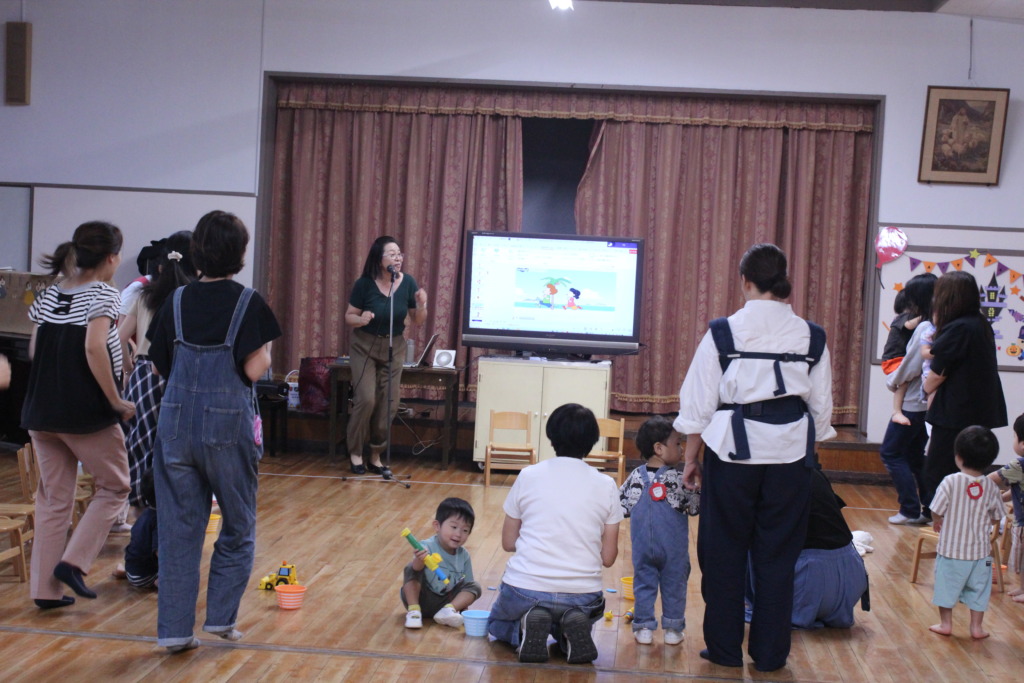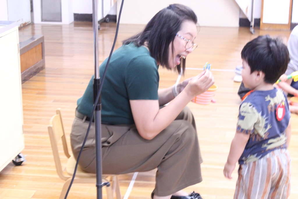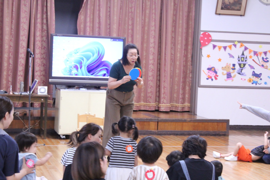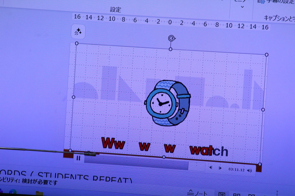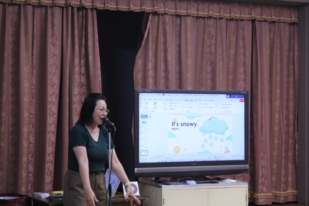 先生は、すべて英語で話され、色の名前を教えてもらったり