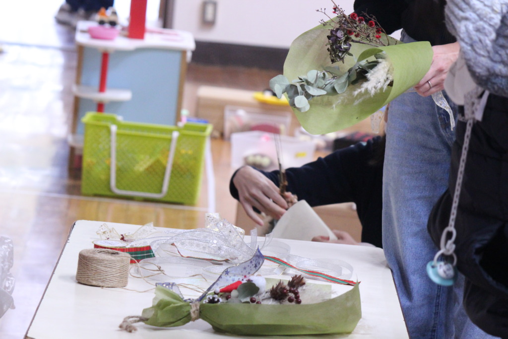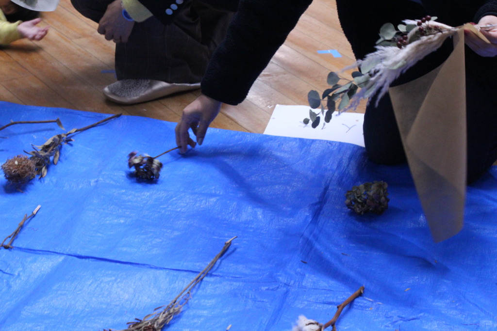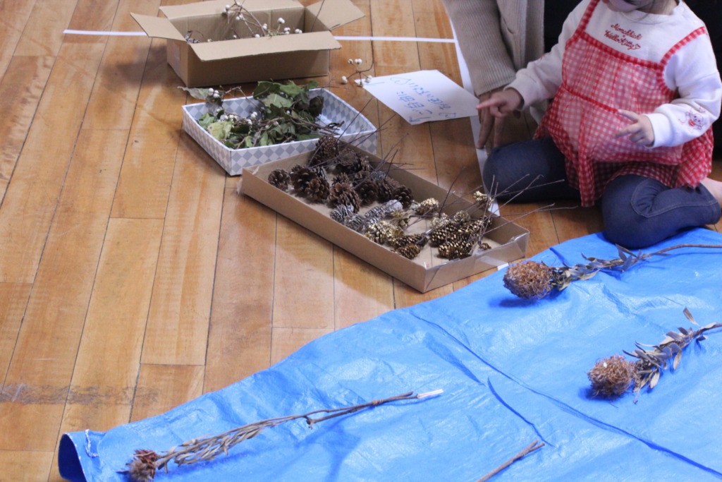 お城公園の秋の実りを生かして、クリスマス飾りを作りました!